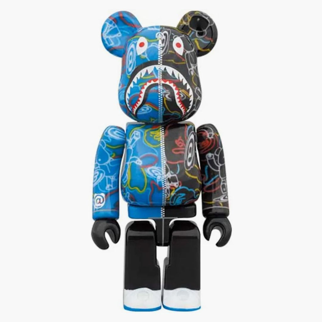 Bearbrick X Bape Line Camo Shark 100% & 400% Set Blue/black