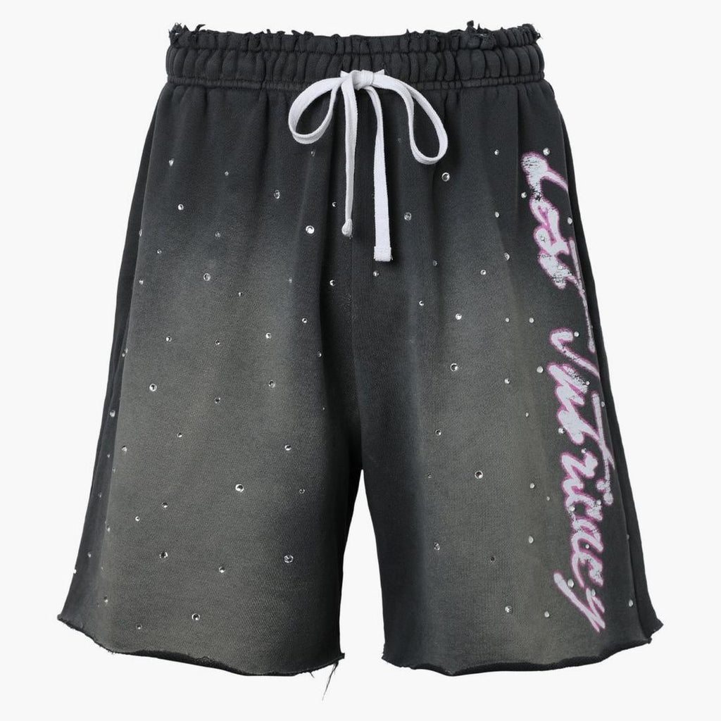 Die schwarzen Sweatshorts von Lost Intricacy überzeugen mit auffälligen Details und modernem Streetwear-Vibe. Strass-Elemente verteilen sich über das gesamte Material und sorgen für einen dezenten Shine-Effekt, während der vertikale „Lost Intricacy“-Print in Pink entlang des Beins ein klares Statement setzt. Der elastische Bund mit weißem Kordelzug garantiert optimalen Halt und unterstreicht den Kontrast-Look. Die offene Saumkante sowie die aufgesetzte Gesäßtasche runden das Design mit einem lässigen, leicht raw gehaltenen Finish ab. Perfekt für alle, die auf schwarze Shorts, auffällige Prints und individuellen Urban Streetstyle setzen.Bei HYPENEEDZ erhältst du ausschließlich neue und 100% originale Produkte.