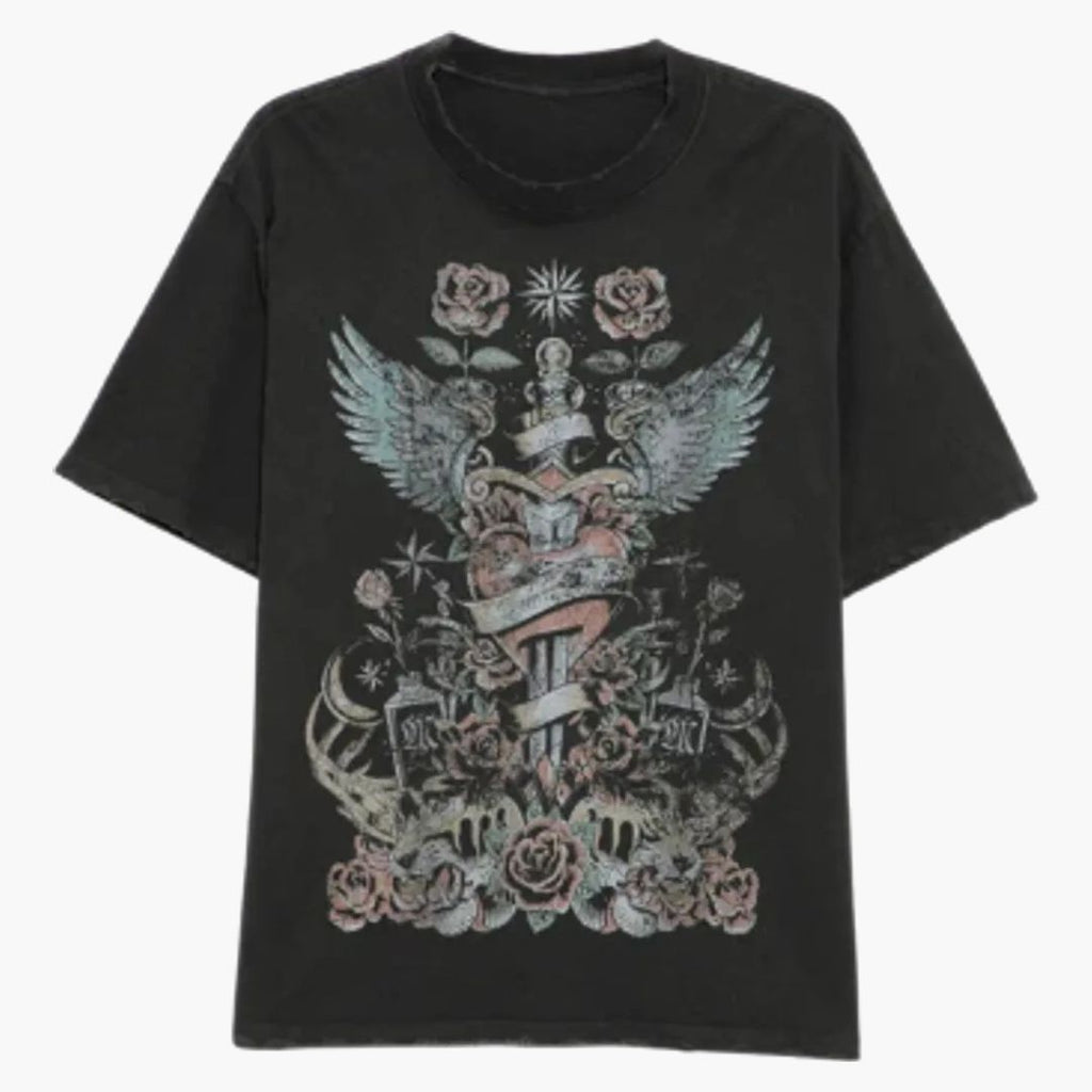 Warman Gothic Sacred Heart&Wings Graphic T-Shirt