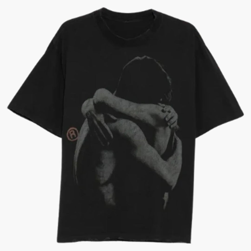 Das schwarze Graphic T-Shirt überzeugt mit einer ausdrucksstarken, minimalistischen Illustration in dunkler Ästhetik. Das zentrale Motiv zeigt zwei sich umarmende Figuren in kontrastreichem Grau-Schwarz-Look und verleiht dem Shirt eine emotionale, leicht mystische Wirkung. Der dezente Used-Effekt unterstreicht den künstlerischen Charakter des Designs. Die schlichte Farbgebung sorgt für einen cleanen, modernen Streetwear-Vibe und macht das Shirt vielseitig kombinierbar. Der lockere Schnitt und das angenehme Material bieten hohen Tragekomfort im Alltag. Ideal für alle, die auf schwarzes Graphic T-Shirt, reduzierte Prints und ausdrucksstarken Urban Style setzen.Bei HYPENEEDZ erhältst du ausschließlich neue und 100% originale Produkte.