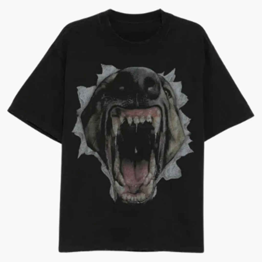 Das schwarze Graphic T-Shirt überzeugt mit einem kraftvollen und detailreichen Frontprint. Das dominante Motiv eines fletschenden Rottweilers, der scheinbar durch das Shirt bricht, sorgt für einen intensiven und rebellischen Look. Die realistische Darstellung mit scharfen Konturen und starken Schattierungen verleiht dem Design eine besondere Tiefe. Der lockere Schnitt und das angenehme Material bieten hohen Tragekomfort im Alltag. Die dunkle Farbgebung unterstreicht den markanten Charakter und macht das Shirt zum perfekten Statement-Piece für Streetwear- und Urban-Outfits. Ideal für alle, die auf schwarzes T-Shirt, auffälligen Animal-Print und ausdrucksstarken Graphic-Style setzen.Bei HYPENEEDZ erhältst du ausschließlich neue und 100% originale Produkte.