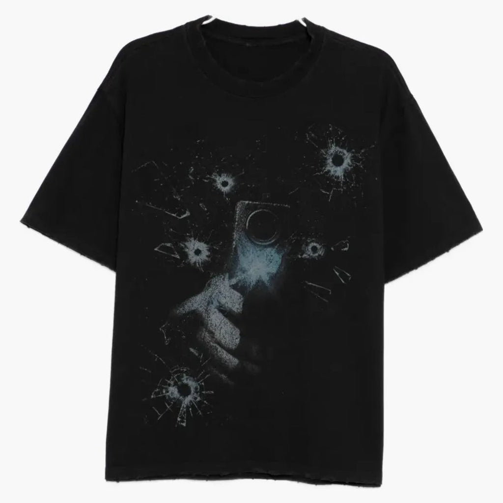 Düsteres Statement-Piece mit kompromisslosem Look: Ein zentraler Gun-Print mit Einschusslöchern sorgt für maximale Attitude und einen rohen, urbanen Vibe. Der kontrastreiche Print auf schwarzem Stoff macht dieses Shirt zum Eyecatcher in jedem Streetwear-Fit.Bei HYPENEEDZ erhältst du ausschließlich neue und 100% originale Produkte.