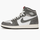 The Jordan 1 Retro High OG Washed Black (GS) impresses with its classic basketball look, paired with a touch of vintage charm. This child version in High-Top cut presents a white leather group with perforated tobox and has dark gray suede overlays and a Swoosh that create the illusion of washed out black. The gray suede collar harmonizes with the padded tongue made of nylon, which adorns a black tongue label.