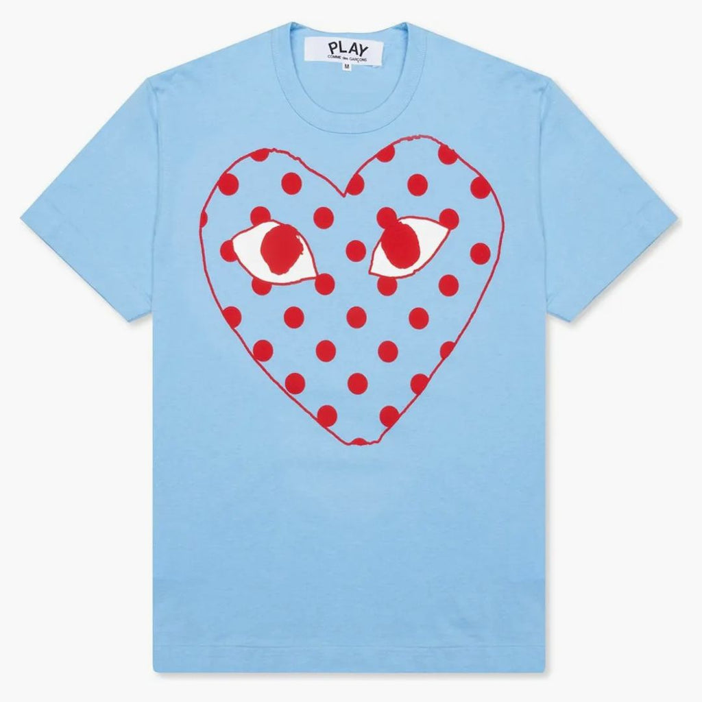 Comme Des Garcons Play Women's Pastelle Polka Dot Red Heart T-shirt Blue