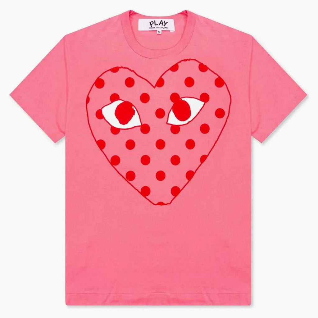 Comme Des Garcons Play Women's Pastelle Polka Dot Red Heart T-shirt Pink