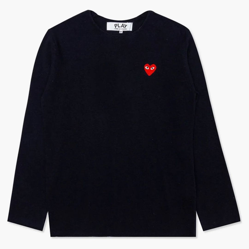 Comme Des Garcons Play Women's Red Heart Crewneck Sweater Navy