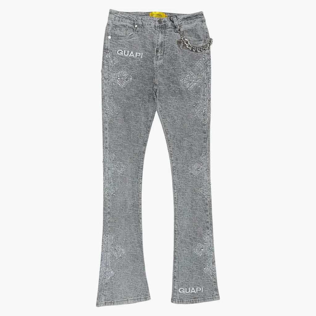 Guapi Distressed Cross Denim Jean Smoke Grey
