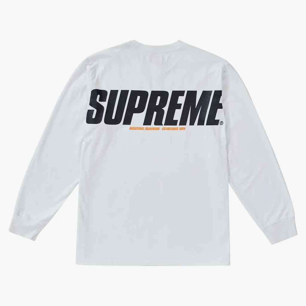 Discover the Supreme Trademark L/S Top in timeless white, which can be easily integrated into any wardrobe. This long-sleeved shirt impresses with its high-quality workmanship and the type of brand that combines elegance and street style. The discreetly placed logo ensures a classic look that convinces both in the city and at the casual meeting with friends. Made from first -class materials, it not only guarantees style, but also a pleasant wearing in every season. A must-have for everyone who value exclusive streetwear.