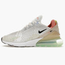 The Air Max 270 White Sanddrift gives the classic Nike Air Max Design a new, fresh coat of paint and is specially designed for the lifestyle area. Its upper material takes up the aesthetics of running shoes, with various white mesh patterns guarantee a feather-light fit with every step. Synthetic coatings on the toe cap and the midfoot offer additional hold and stylish accents. Beige textile covers and a tan-colored heel stabilizer increase stability, while a yellow heel strap makes it easier to take off and take off. A visible air element in mint green and soft, white foam in the forefoot area ensure excellent comfort under the two-part means. The shoe is rounded off by a black, green transparent and speckled outsole. A special highlight is the peach -colored inner shoe, which offers a sock -like fit. The Air Max 270 White Sanddrift was released on April 17, 2022.All at Hypeneedz offered items are guaranteed New and authentic. Every article is from our Team of experts Checked exactly before it is sent to you.