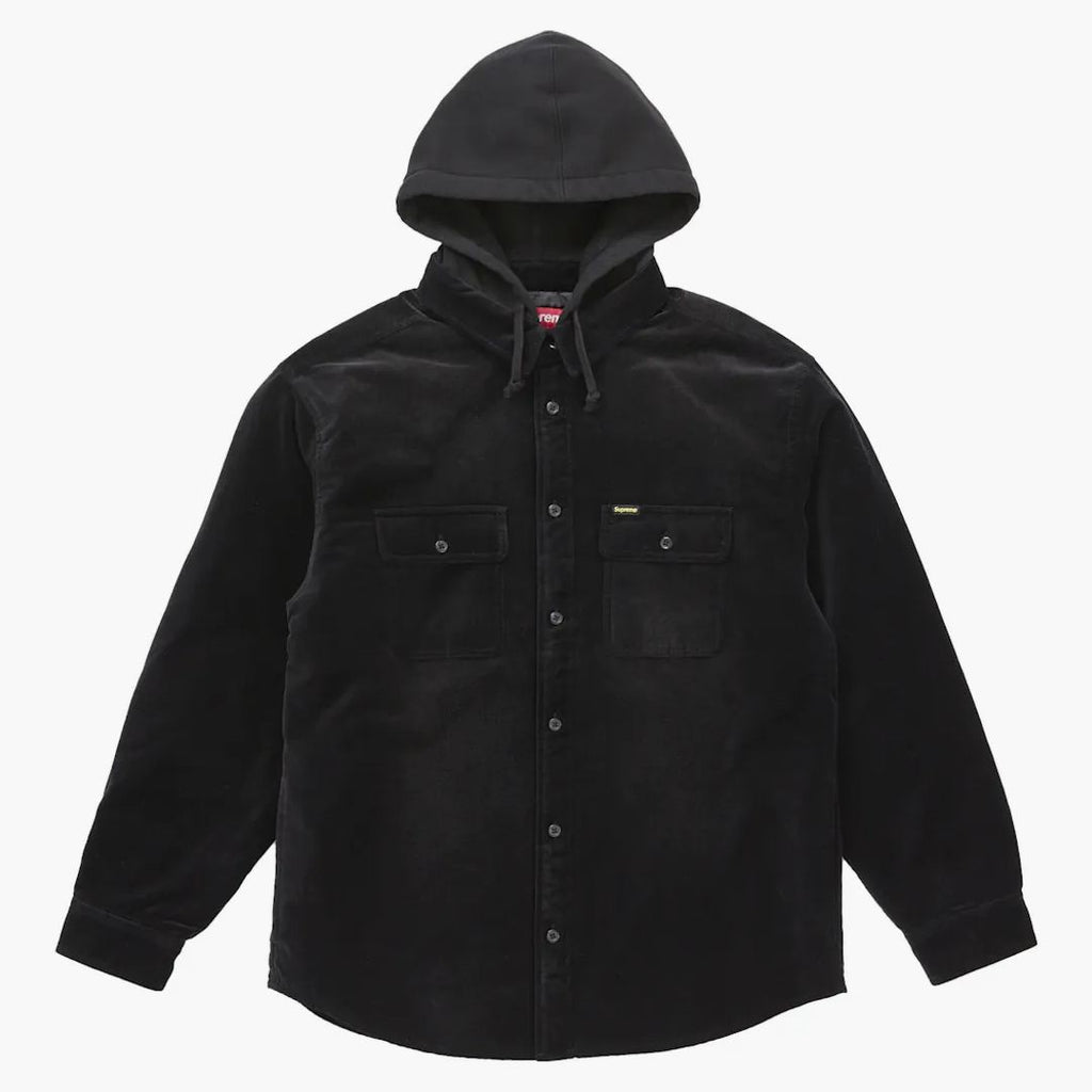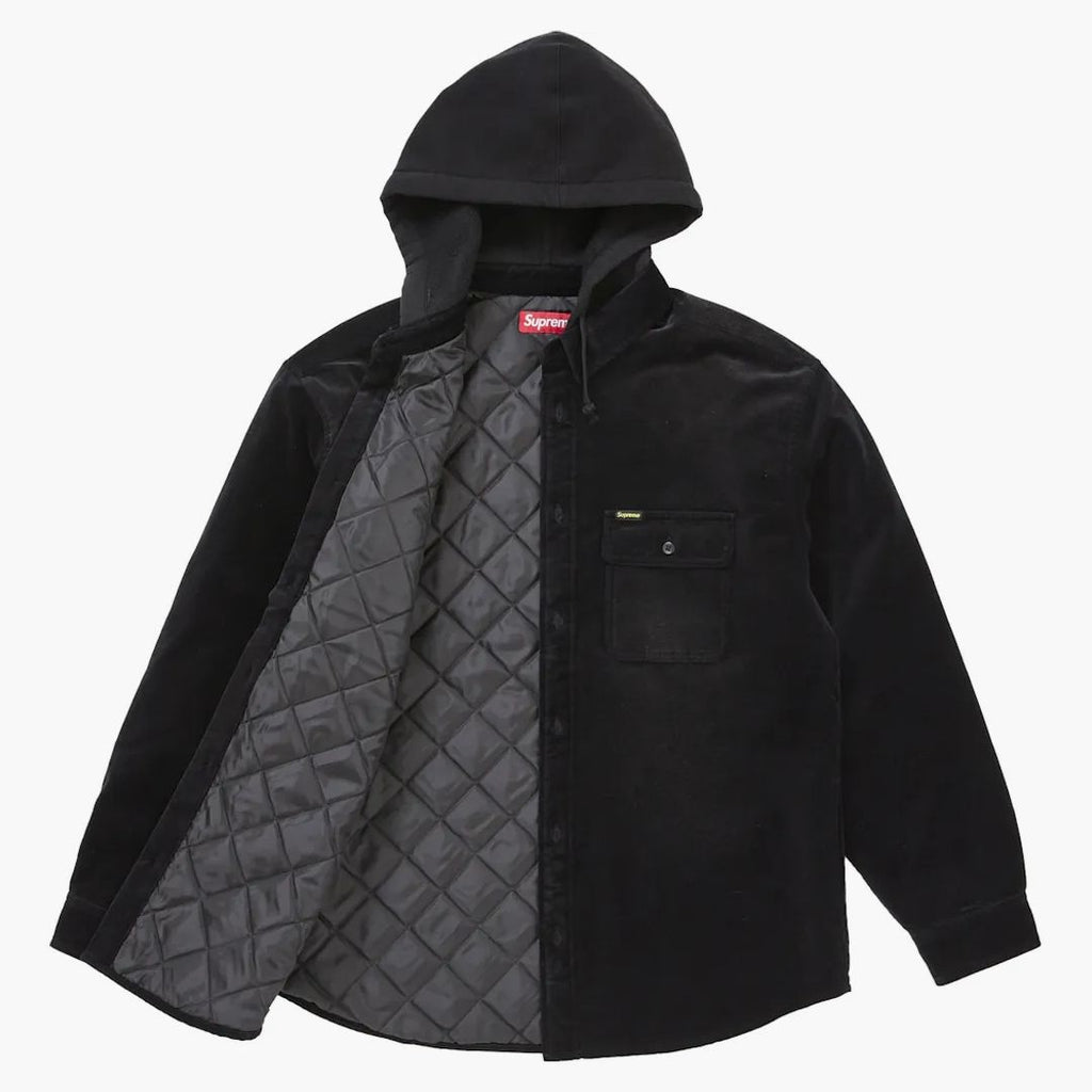 Supreme Quilted Lined Hooded Velvet Shirt Black