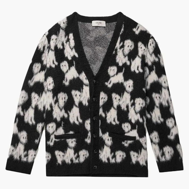 The Celine Brushed Cotton Blend Jacquard Cardigan combines timeless elegance with modern comfort. The luxurious mix of cotton material offers a soft fit and ensures that this cardigan convinces both formal occasions and in everyday life. The design in classic black makes it a versatile companion in every wardrobe. High-quality workmanship and the unmistakable Jacquard pattern give it a noble finish. Perfect for everyone who value style and quality.All at Hypeneedz offered items are guaranteed New and authentic. Every article is from our Team of experts Checked exactly before it is sent to you.
