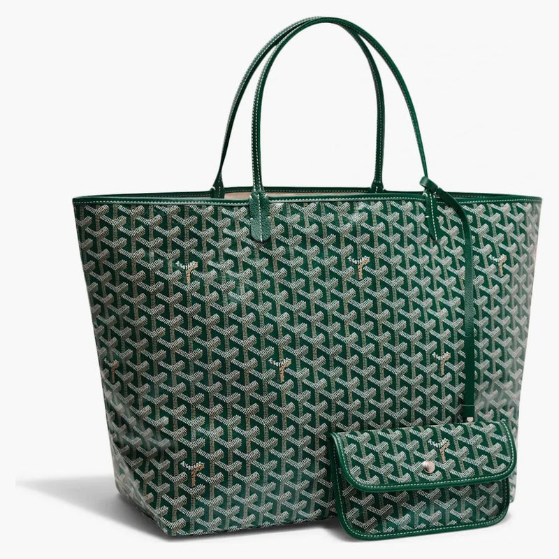 Discover the Goyard Saint Louis Tote GM in a fascinating green tone - a symbol of luxury and functionality. This bag combines lightness and durability by using Goyardine, a unique mix of materials, tailored to modern lifestyle. The reversible properties and the waterproof design make you the perfect companion for everyday life. The green print, held in monogrammed chevron, embodies Goyard's long -term tradition. With the robust double leather handles, the bag can be easily worn over the shoulder. Let yourself be inspired by the combination of a removable pochette and the elegant design. A must-have for connoisseurs of High-Fashion and exclusivity.All at Hypeneedz offered items are guaranteed New and authentic. Every article is from our Team of experts Checked exactly before it is sent to you.