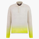 Dior X Kaws Long Sleeved Polo Shirt White and Yellow Cotton Jacquard