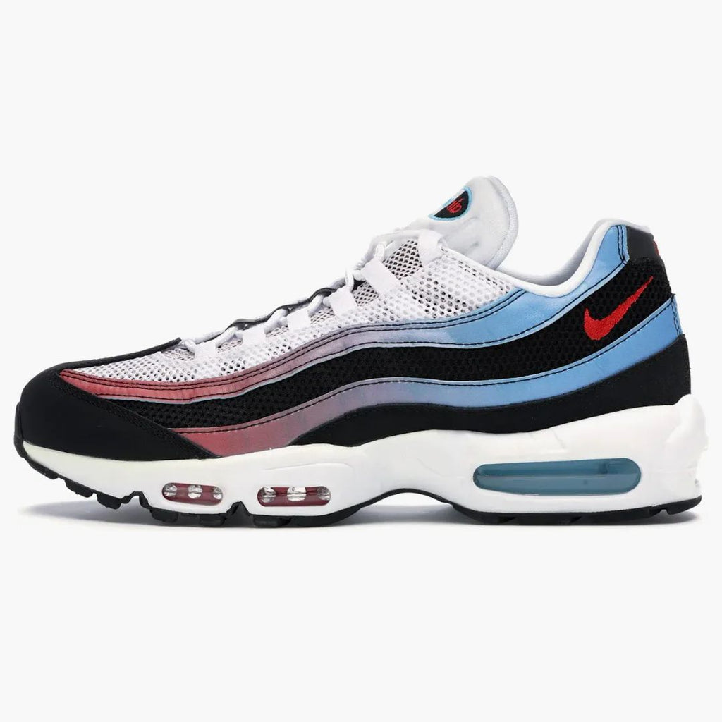 With the Nike Air Max 95 Blue Red Gradient, a dynamic design moves into the shoe shelf. Inspired by the energy of the 90s, this sneaker combines comfort and style in perfection. The striking color gradient from Black to University Red to Blue Fury sets exciting accents, which are particularly highlighted by detailed seams and high -quality materials. Ideal for modern everyday life, the proven Nike Air Damping offers an exceptionally light and pleasant sense of wear. Whether in urban space or on the way to the next big event - with this model you are well prepared.All at Hypeneedz offered items are guaranteed New and authentic. Every article is from our Team of experts Checked exactly before it is sent to you.