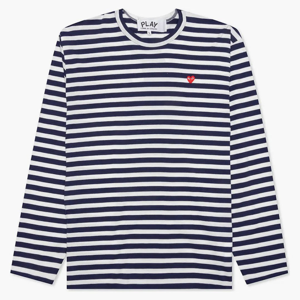 Comme Des Garcons Play Small Red Heart Striped L/s T-shirt Navy/white