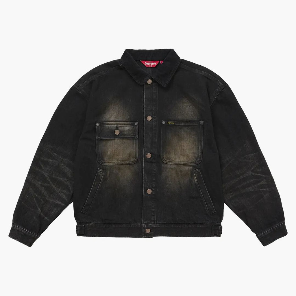 Supreme Distressed Selvedge Trucker Jacket (fw25) Washed Black