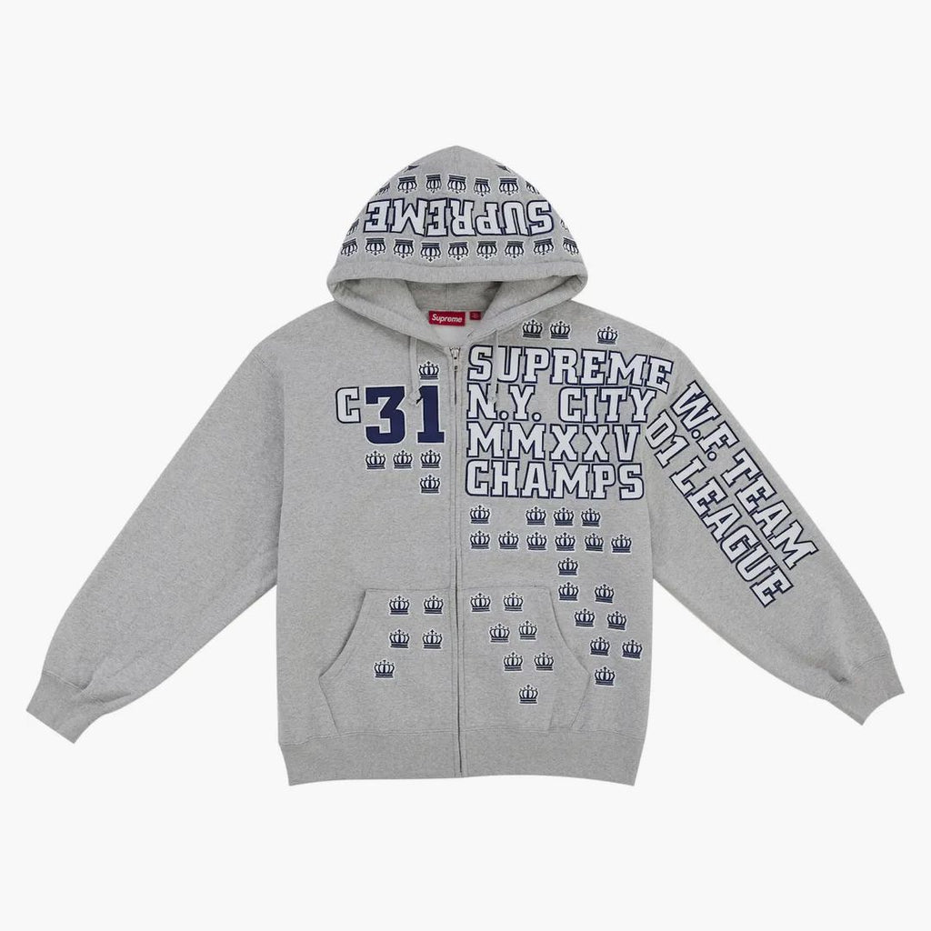 Supreme League Champs Zip Up Hooded Sweatshirt Grey