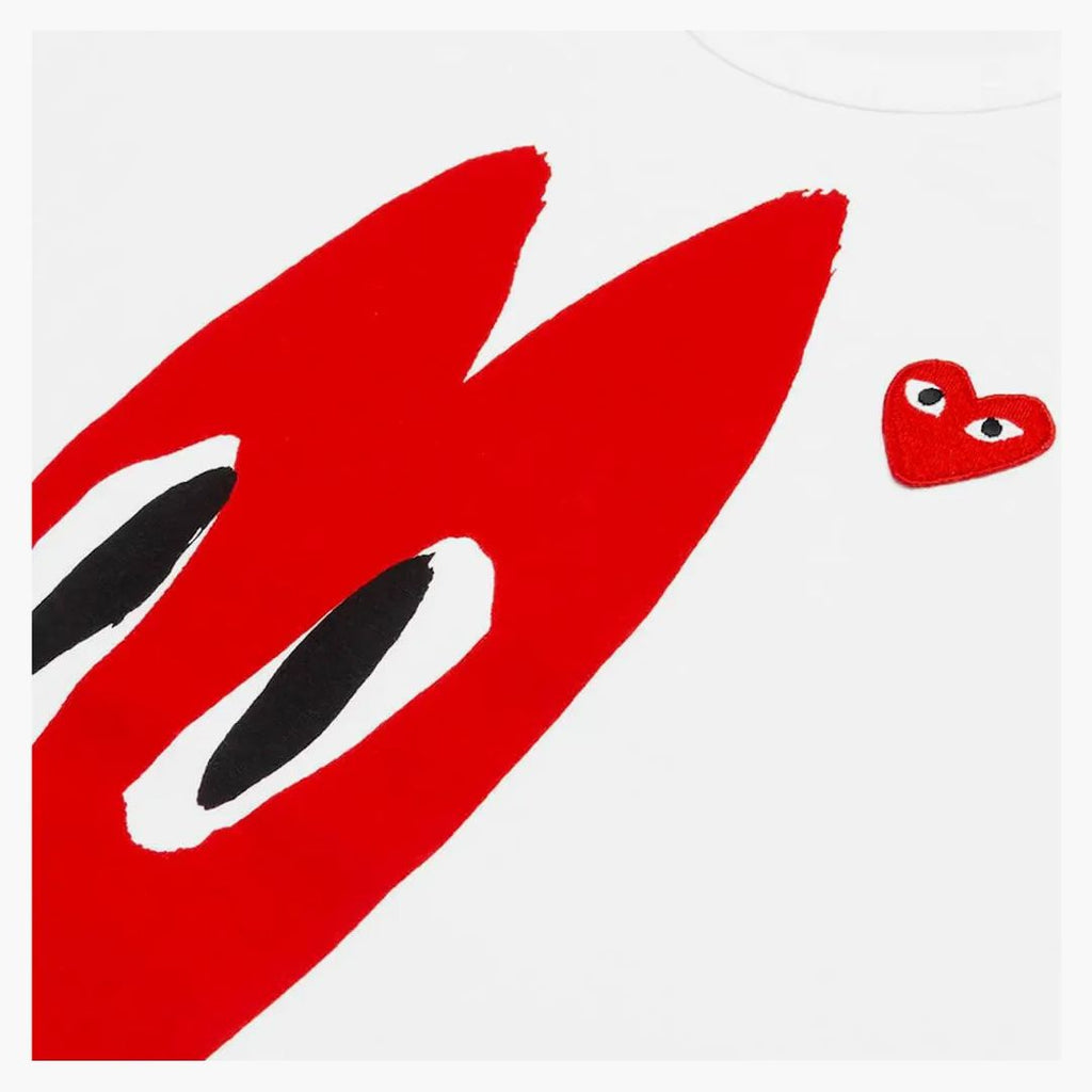 3 151 krComme of the Garcons Play Women's Red Emblem Long Heart T-Shirt White
