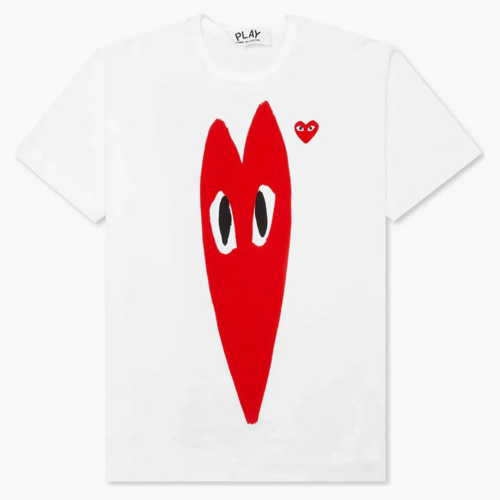 Comme Des Garcons Play Women's Red Emblem Long Heart T-shirt White