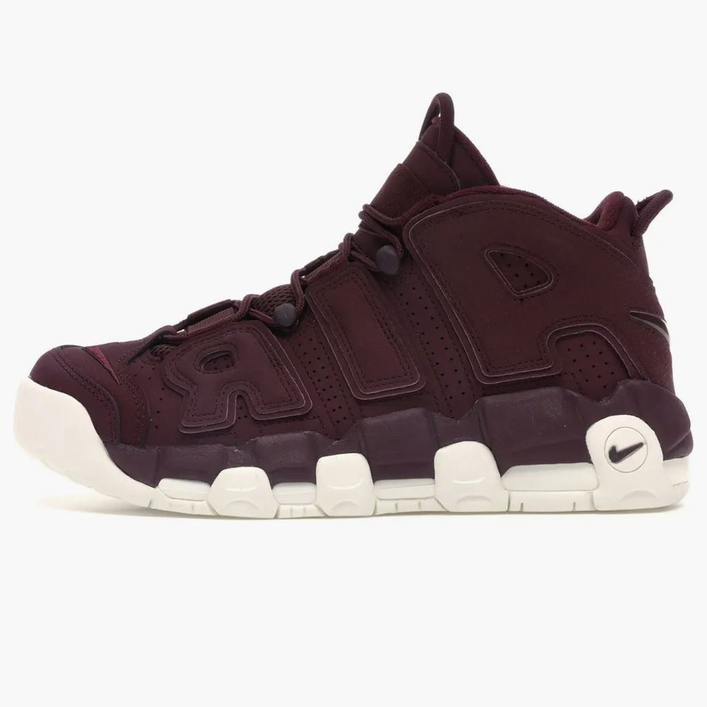 With the Nike Air More Uptempo Night Maroon, the spirit of the 1990s floats basketball culture in every step. The iconic 'Air' design runs strikingly over the entire upper material and shows the commitment to innovation. Thanks to the continuous air-soles unit, the shoes offer comfort on both the field and in everyday life. Durable leather and elastic straps give stability, while the padded shaft gives the feeling of landing on a cloud. Particularly noteworthy is the fishing bone traction pattern of the outsole, which ensures a safe hold-no matter where everyday life leads. Originally published in 2017, this sneaker remains a highlight in the Nike collection.All at Hypeneedz offered items are guaranteed New and authentic. Every article is from our Team of experts Checked exactly before it is sent to you.