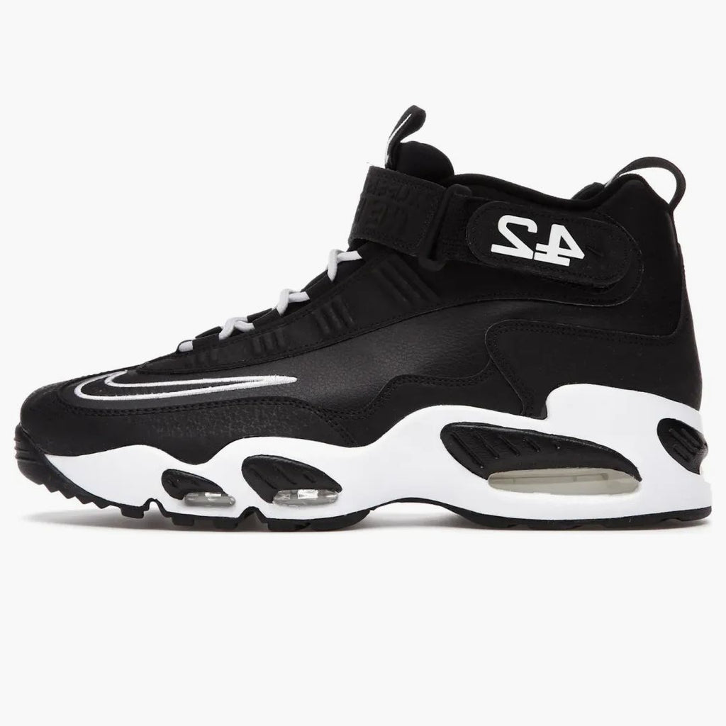 The Nike Air Griffey Max 1 Jackie Robinson is a tribute to one of the most important baseball players and civil rights activists, Jackie Robinson. The upper of this special sneaker combines black and white leather and reflects Robinson's legendary Brooklyn Dodgers uniform. The combination of Nike Air and Phylon foam in the midsole ensures excellent wearing comfort in everyday life. The '42' detail, which can be seen on the Lacestrap and the inner sole, is particularly striking-a memory of Robinson's unforgettable contribution to sports history. A sneaker that brings both style and meaning into harmony.All at Hypeneedz offered items are guaranteed New and authentic. Every article is from our Team of experts Checked exactly before it is sent to you.