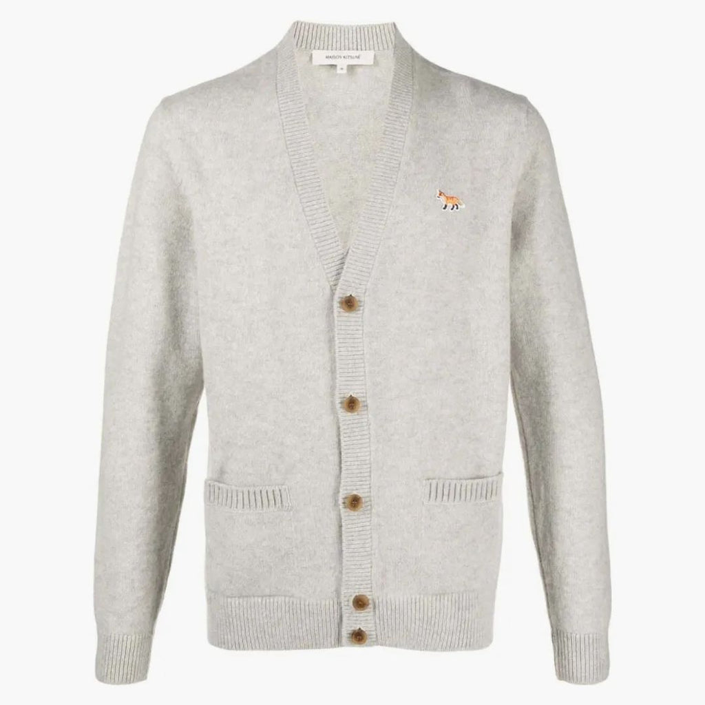Maison Kitsune Baby Fox Patch Regular Cardigan Light Grey