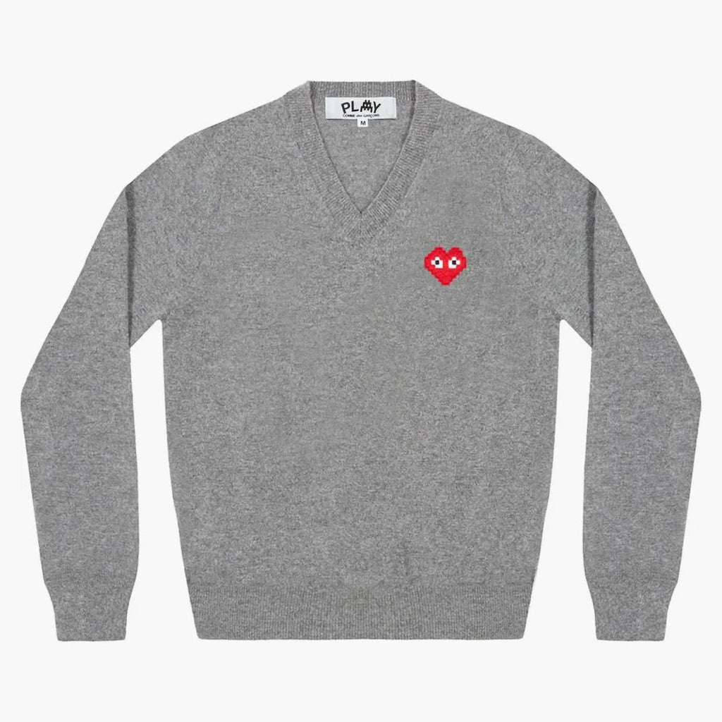 Comme Des Garcons Play X Invader V Neck Sweater Top Grey