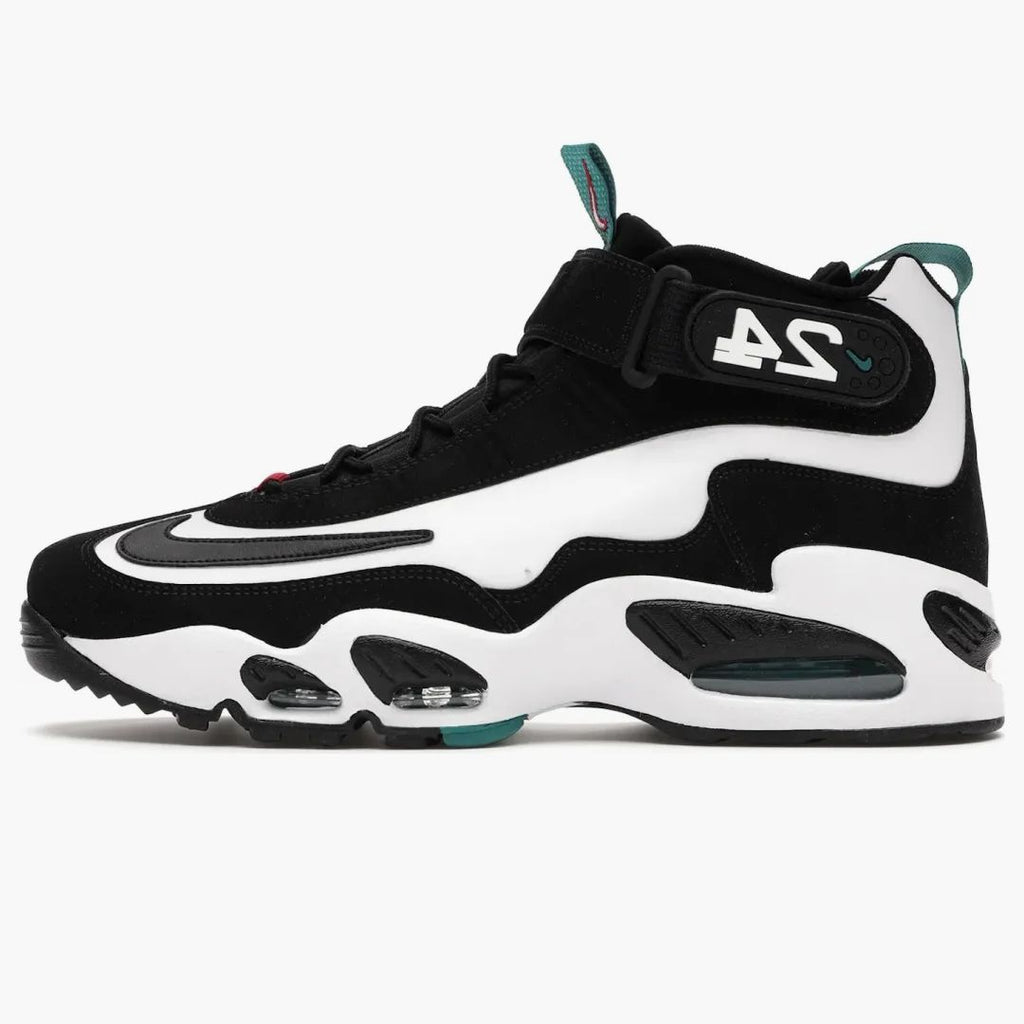 Die Nike Air Griffey Max 1 White Freshwater (2021) sind eine Hommage an das Original aus den 90ern und zum 25. Jubiläum wieder da. Dieses Modell verbindet die legendäre Farbgebung mit moderner Technik. Weiß, Freshwater, Schwarz und Rot harmonieren perfekt auf dem Obermaterial, das an die Seattle Mariners erinnert. Nummer 24 prangt stolz auf dem Knöchelriemen. Swoosh und Fresh Water ziehen sich als Designelemente durch das gesamte Modell.