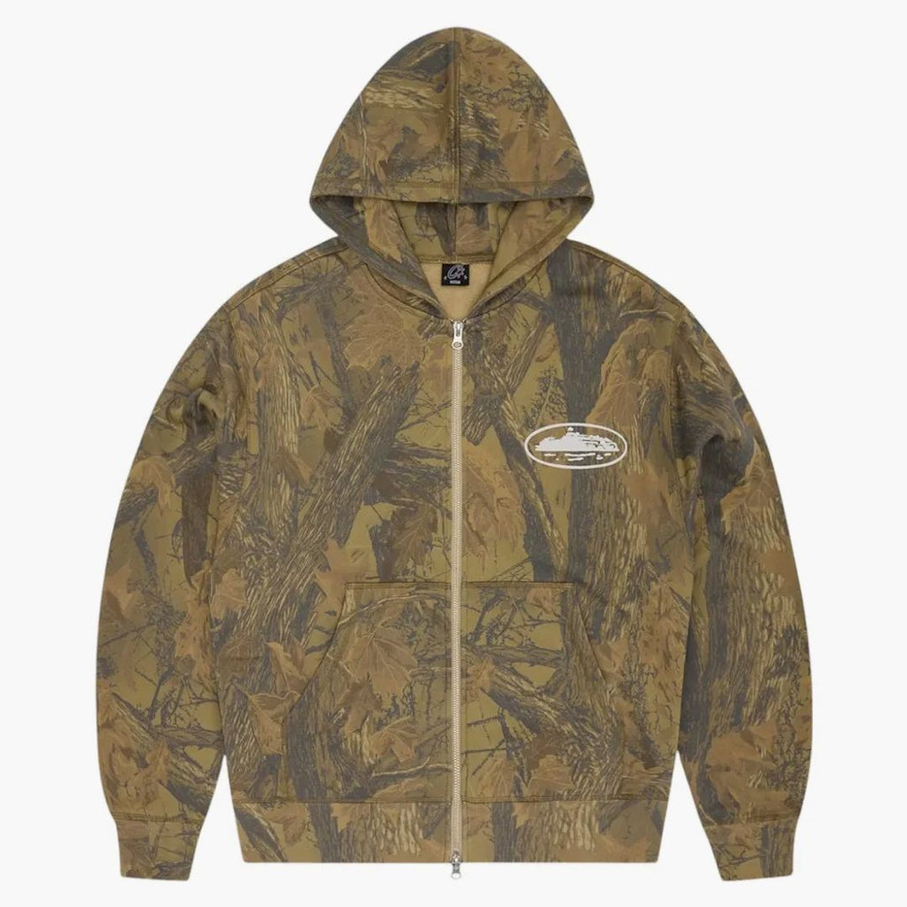 Corteiz Island Puff Print Zip Hoodie Forest Camo