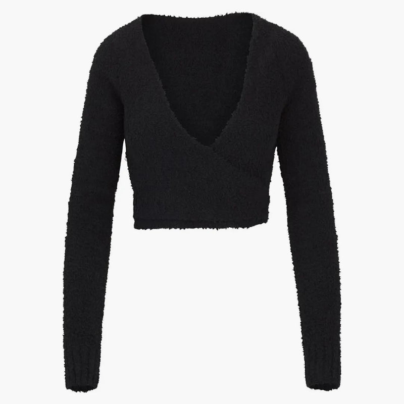 Skims Cozy Knit Wrap Top Onyx