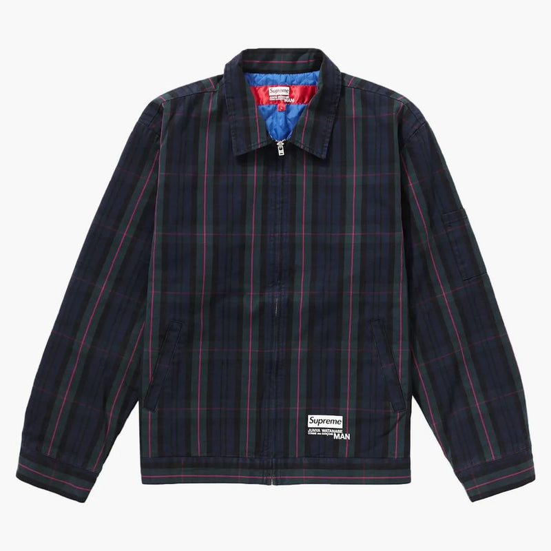 Supreme Junya Watanabe Cdg Man Printed Work Jacket Navy Plaid