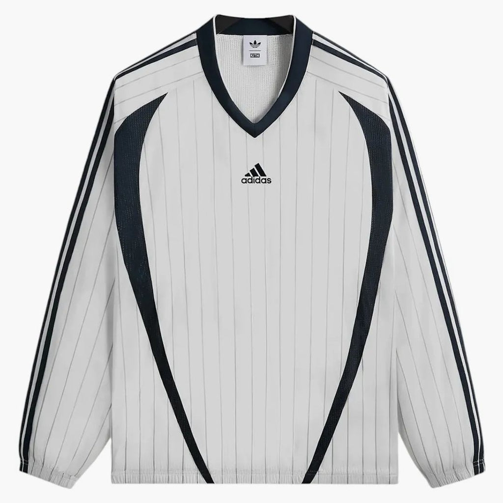AusverkauftKith X Adidas Football Pinstripe Long Sleeve V-neck Jersey White