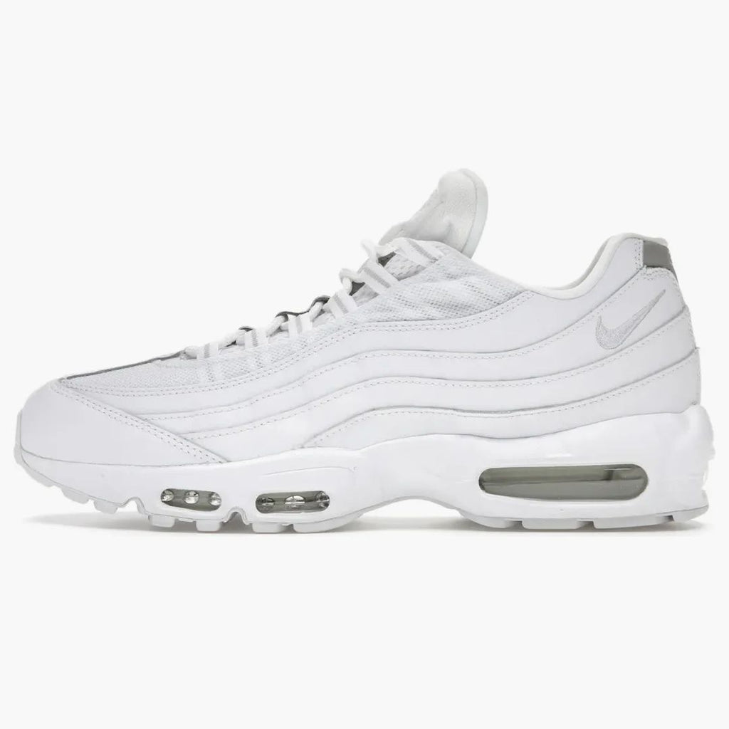Der Nike Air Max 95 White Pure Platinum besticht durch seine harmonische Farbkombination aus Weiß, Pure Platinum und reflektierendem Silber. Das maßgebliche Mesh-Obermaterial in Pure Platinum sorgt für ein luftiges Trageerlebnis, während die silbernen Akzente an Ferse und Zunge einen Hauch von Eleganz verleihen. Der Mini Swoosh auf der Seite und die Air Max sowie Nike Air Markierungen runden den Look perfekt ab. Dank der gepolsterten Innensohle und der charakteristischen Air Max Einheiten garantiert dieser Sneaker langanhaltenden Tragekomfort.