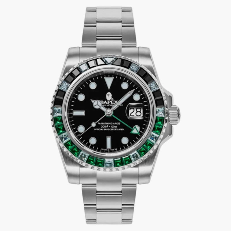 Bape Type 2 Crystal Stone Bapex Watch Black/green