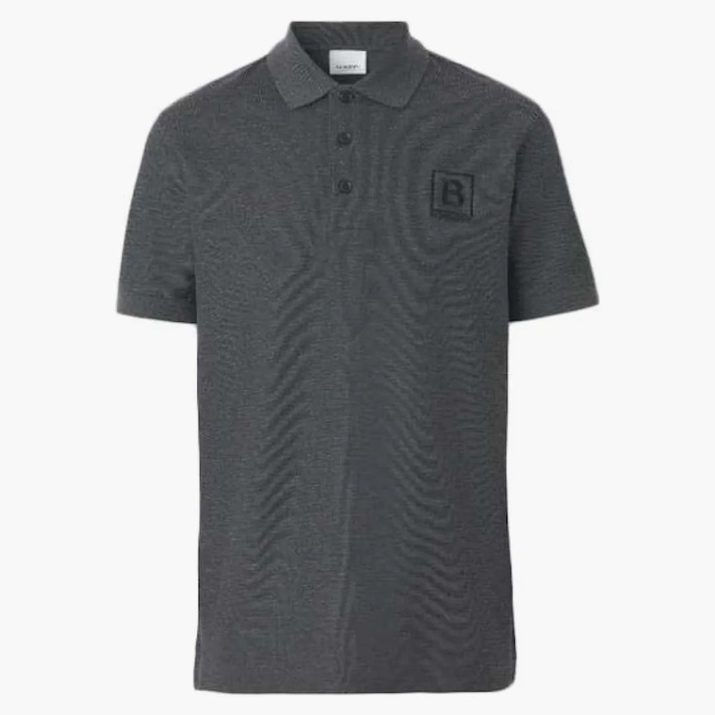 Burberry Letter Graphic Cotton Pique Polo Shirt Dark Grey