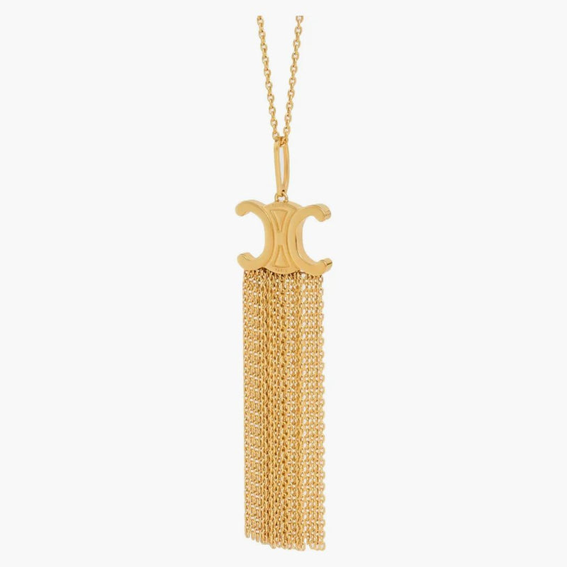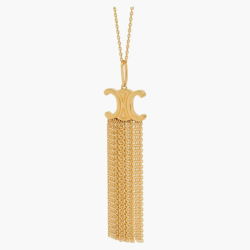 Celine Triomphe Folk Fringe Long Necklace In Brass Necklace In Brass Gold
