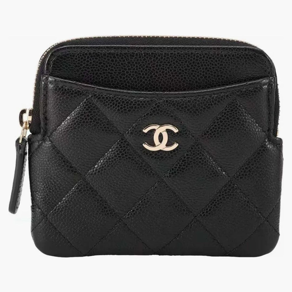 Chanel Classic Zipped Square Coin Purse Black/glod