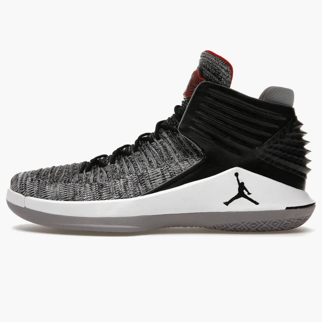 Czarny cement Jordan XXXII łączy współczesny design z kultowymi elementami marki Jordan. Ze uderzającym czarnym i szarym górnym materiale i czerwonych akcentów, tenisówka przyciąga uwagę wszystkich. Wykonany z kombinacji Flyknit i skóry, oferuje zarówno komfort, jak i trwałość. Wbudowana wkładka powietrza zoom na pięcie zapewnia wyjątkowe tłumienie i wsparcie.