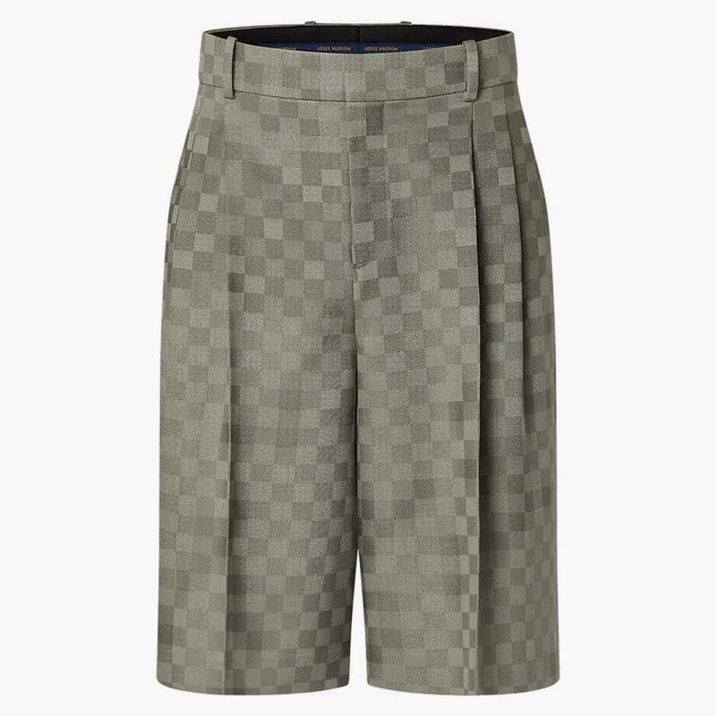 Louis Vuitton Tailored Wide Damier Damoflage Wool Shorts Grey