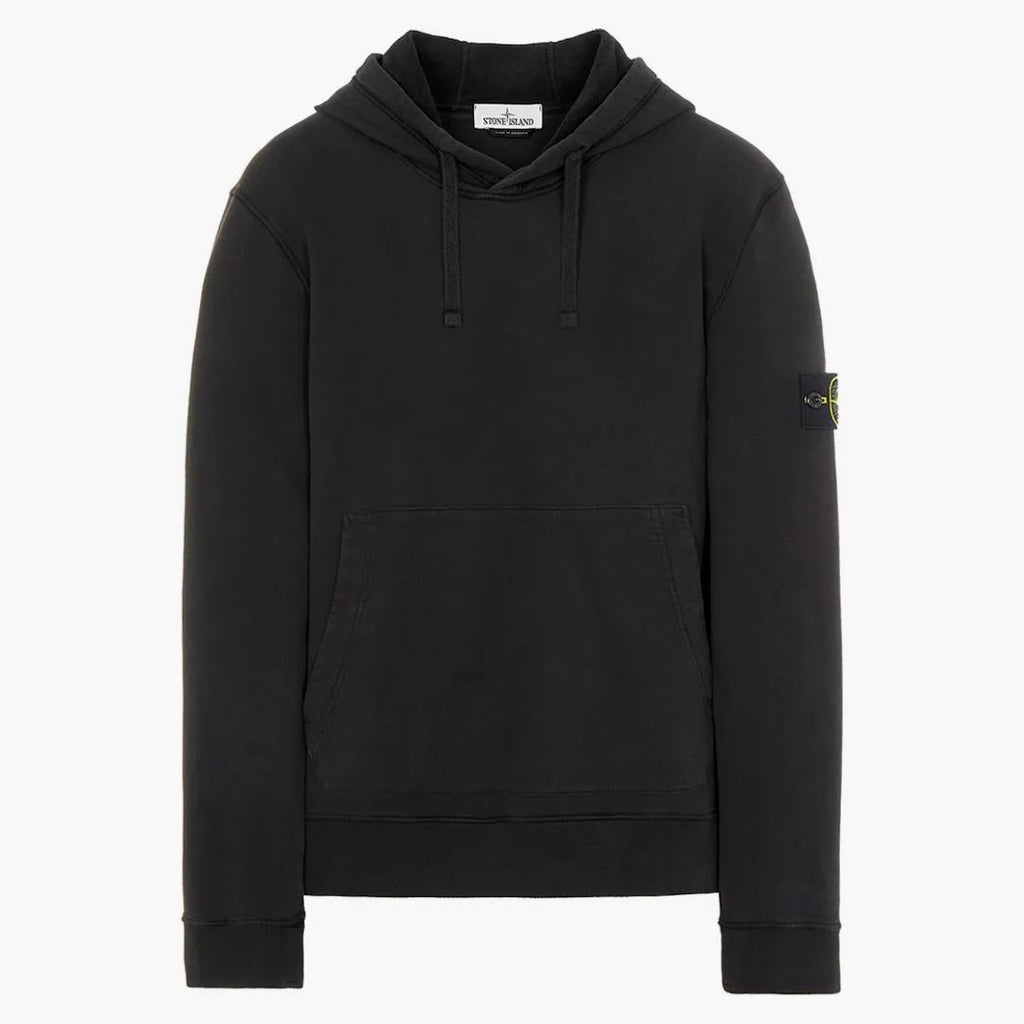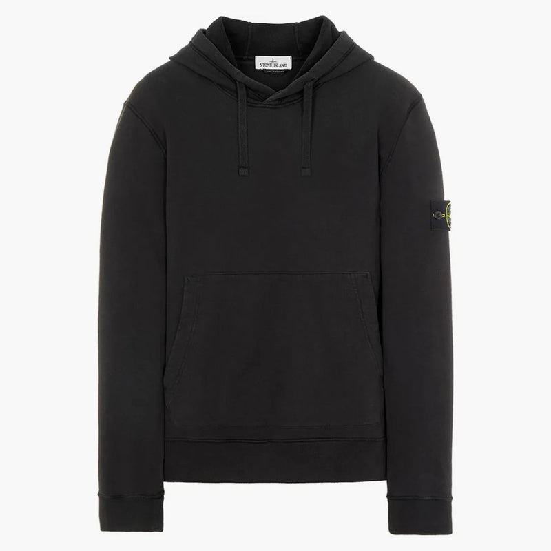 Stone Island 64120 Brushed Cotton Fleece Hooded Sweatshirt Black