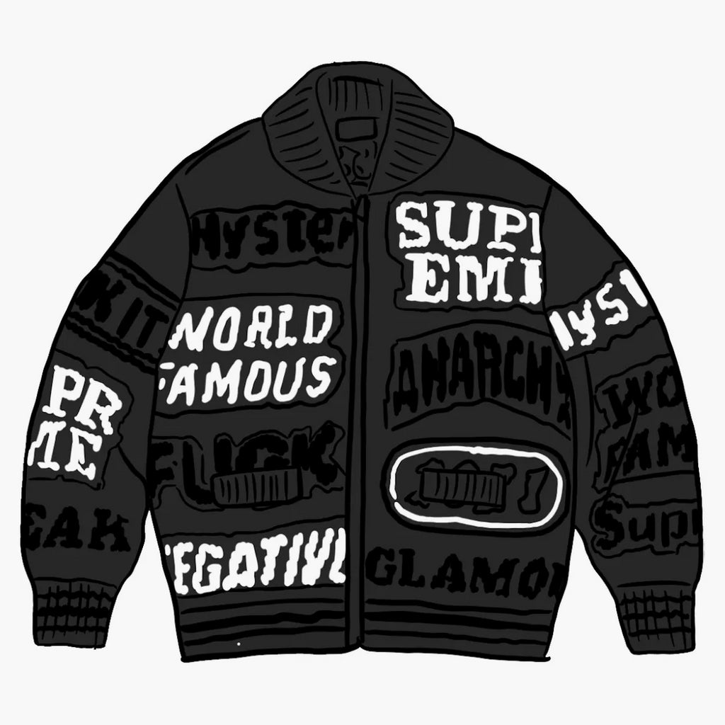 Supreme Hysteric Glamour Logos Zip Up Sweater Black