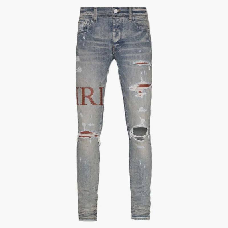 Amiri Leather Stitch Logo Clay Indigo Jean Blue
