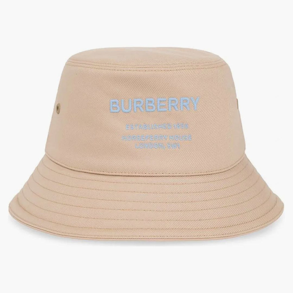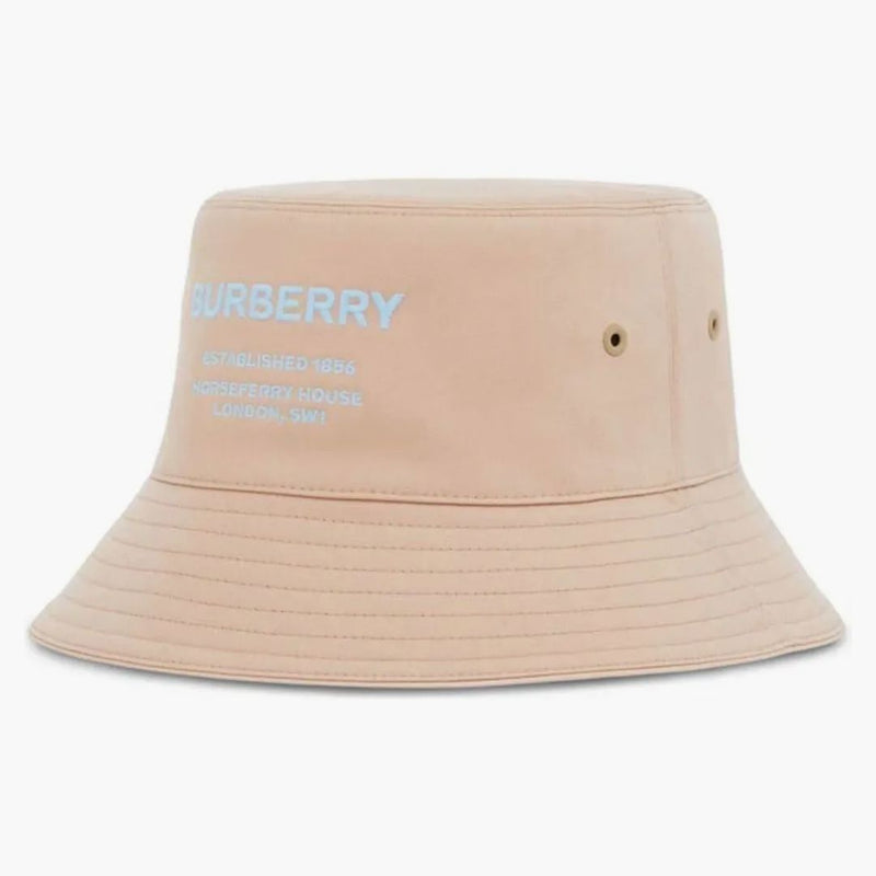 Burberry Logo Embroidered Cotton Bucket Hat Soft Fawn