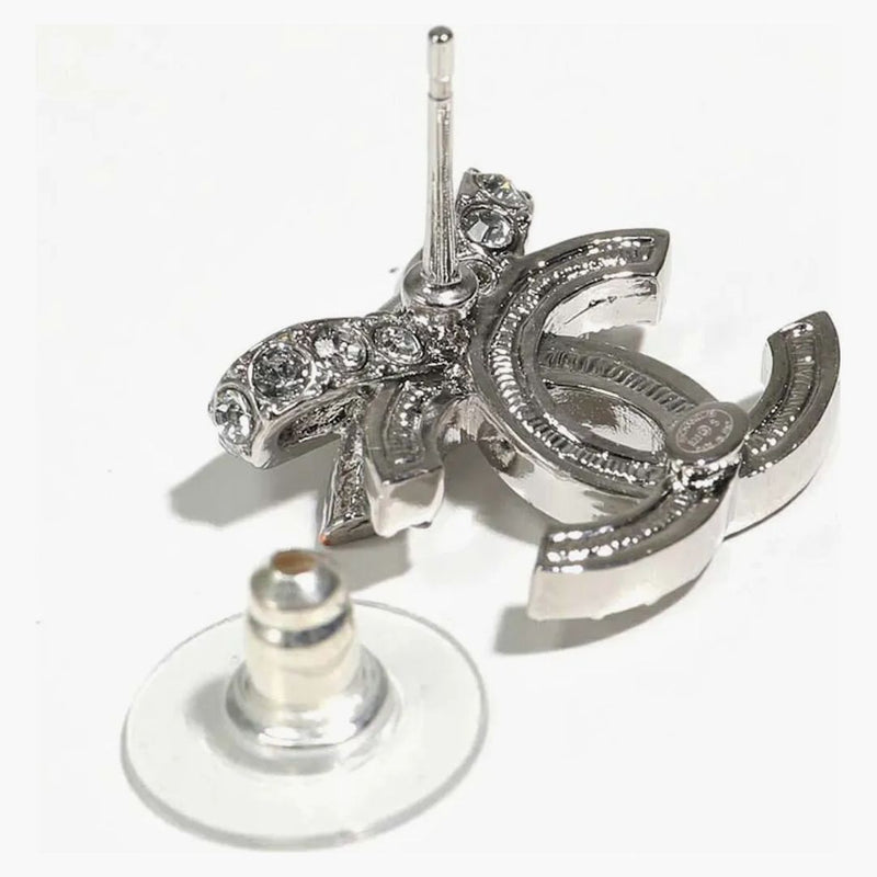 Chanel Bow Tie Cc Logo Earrings Silver (aba922)