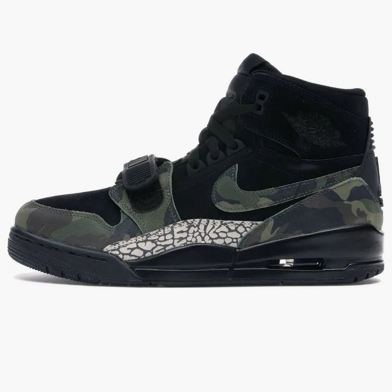 Der Jordan Legacy 312 Black Camo Green vereint in unverwechselbarer Weise Elemente der ikonischen Air Jordan-Serie mit modernem Flair. Mit einem markanten Mix aus Schwarz und Camouflage-Grün wird jeder Blickfang zu einem Muss für Sneaker-Enthusiasten. Der Schuh kombiniert die legendären Stile des Air Jordan 1, Air Jordan 3 und Nike Air Alpha Force und bietet so nicht nur Stil, sondern auch höchsten Tragekomfort und Haltbarkeit durch hochwertige Materialien.