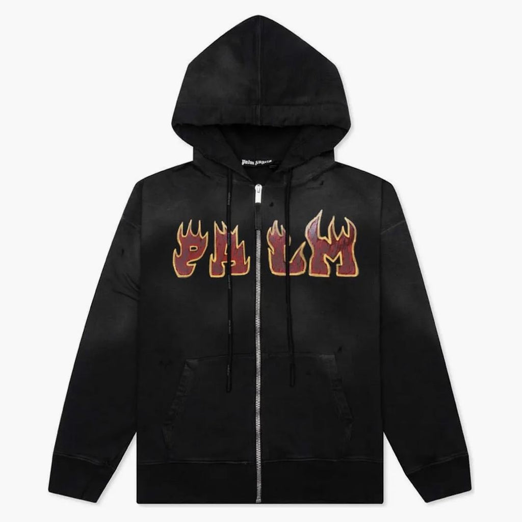 Palm Angels Logo Flames Zipped Vintage Hoodie Black/red