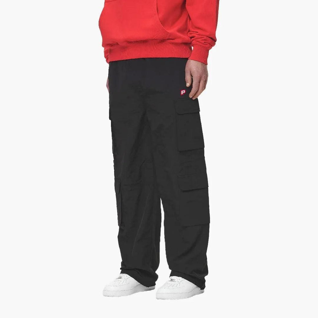 Tech-inspirierte Cargo Pants in Schwarz mit markanter Mehrtaschen-Optik und kleinem „P“-Logo-Patch auf der linken Tasche. Der lockere Schnitt und das funktionale Design mit Utility-Vibes machen die Hose zum Streetwear-Essential. Ideal für Layering mit Hoodies, Tech-Jackets oder Sneakern.