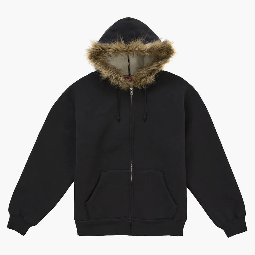 Supreme Faux Fur Zip Up Hooded Sweatshirt Black