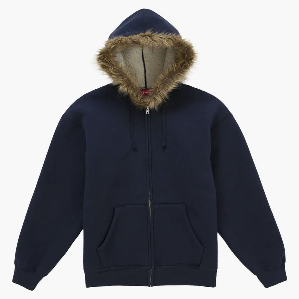 Supreme Faux Fur Zip Up Hooded Sweatshirt Navy
