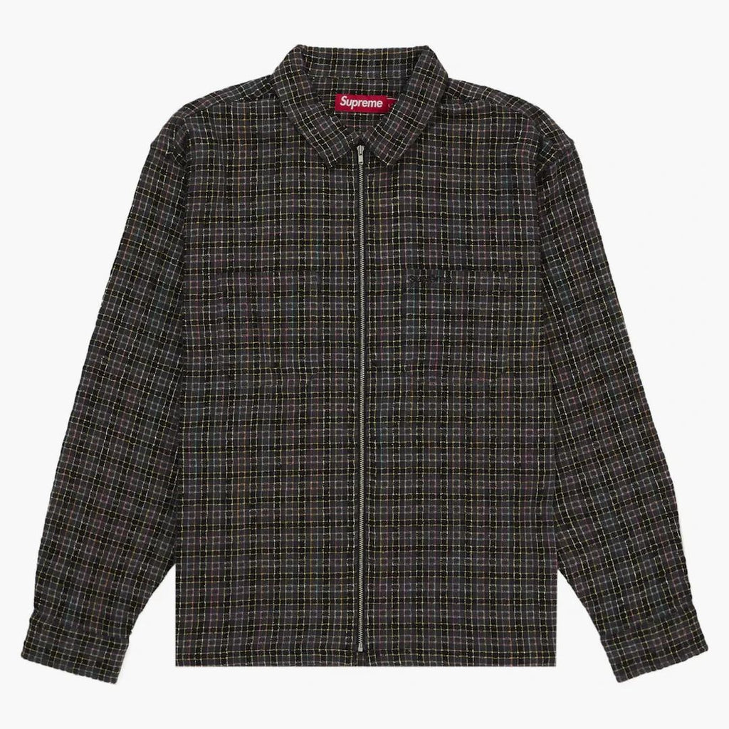 Supreme Metallic Plaid Zip Up Shirt Brown